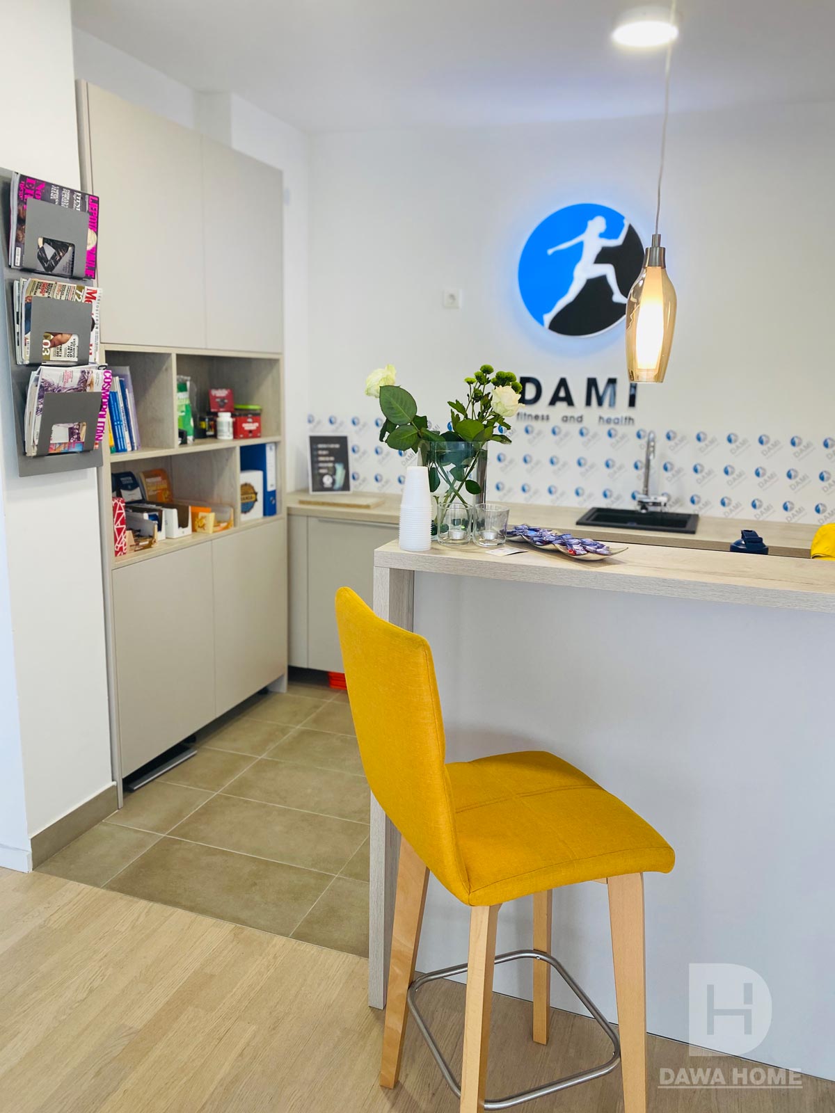 Fitness studio Dami je prostor gdje naša stručnost izražava poseban pečat kroz prilagođeni namještaj. Dawa Home se ponosi time što smo stvorili funkcionalne i estetski privlačne komade namještaja koji prate energiju i dinamiku prostora.